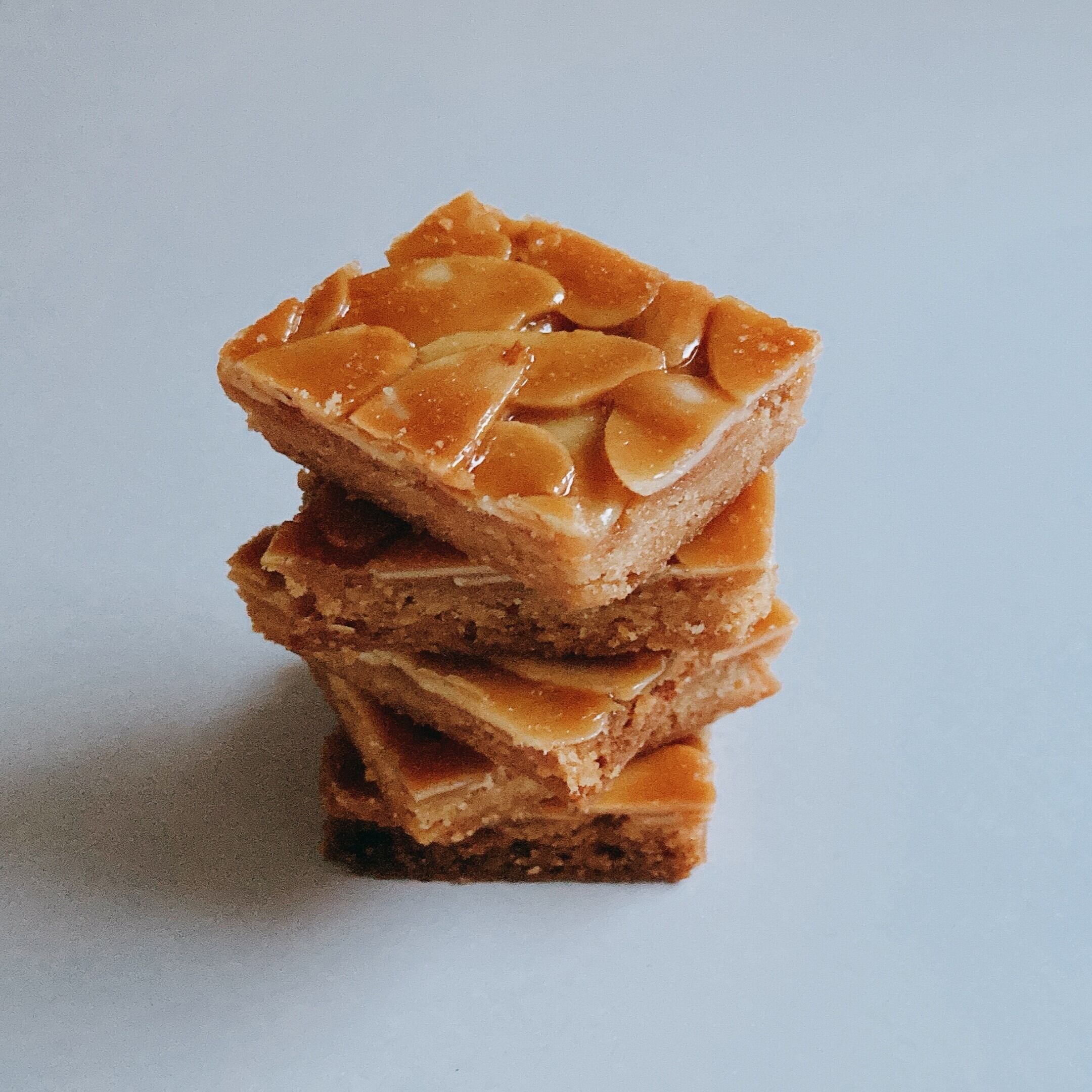 香ばしいサブレ生地にローストアーモンドのカラメリゼがのった、ザクザク食感のクッキー